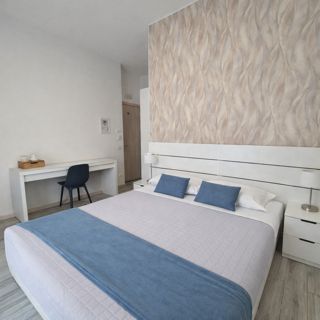 Elegant and functional double room, designed to provide comfort and relaxation throughout your stay. The room is furnished in a modern style with neutral tones and carefully selected details, and features a comfortable double bed with quality linens.